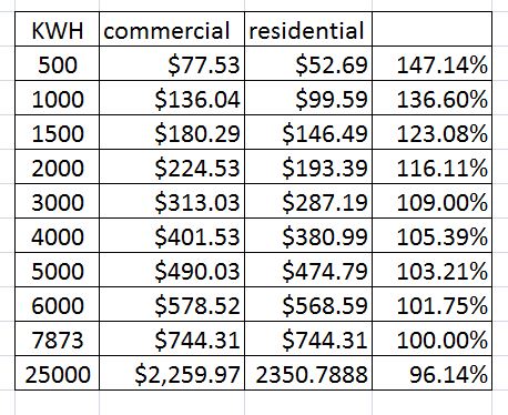 This Table represents the relationship of commercial electric rates to Residential rates